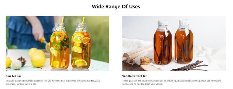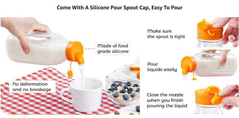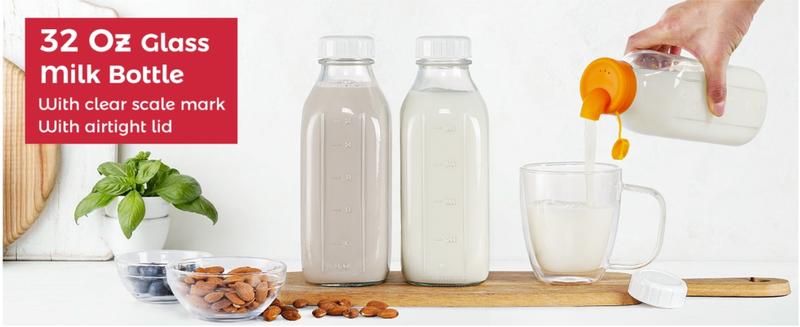 Stay organized with these 32 oz reusable glass milk bottles. The set includes two glass jars with silicone dispenser caps. Each bottle features an airtight screw lid, ensuring no leaks. Ideal for storing breast milk, these bottles come with scale marks for easy tracking. Perfect for refrigerators, they keep your milk fresh and secure.